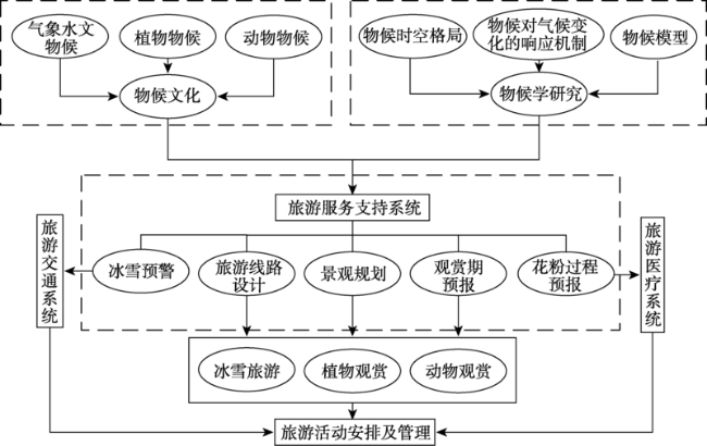 在20世纪80年代应用地理大发展中应运而生的旅游地理学,因发展历程尚短、理论方法体系不十分健全和完善,对持续快速发展的旅游业支撑乏力,迫切需要从相邻学科吸收养分。物候学与旅游地理学交叉性质明显,可多方面支撑其发展。本文系统梳理了物候学对旅游业的学科支撑作用、具体实践应用领域、服务于旅游业高质量发展的6个维度以及气候变化对物候旅游资源和相关行业的影响。主要结论有:(1)物候概念有助于系统整合旅游系统中自然、人文和社会要素的相关旅游资源,而物候学应用亦可有效提升区域旅游业的服务支持子系统、交通子系统以及医疗健康子系统的效用;(2)物候学在旅游业发展中的实践应用主要涉及利用植物季相进行景观设计、观赏季划分与观赏期预报、体验类生态旅游活动的时间规划、花粉浓度预报与冰雪灾情预警以及旅游线路设计五大方面;(3)物候学可在要素、行业、过程、时空、方位和部门6个维度上服务于旅游业的高质量发展;(4)物候旅游资源和相关产业对于气候变化响应敏感,相关研究人员在未来应注重气候变化对其的风险影响研究,深入分析游客感知、行为反应所受影响,并积极参与中长期产业发展规划以及行业报告编制。从学科发展和产业应用的角度讲,物候学可为旅游学的研究提供自然科学的理论支撑,也为当今气候变化背景下旅游业的可持续发展提供科学指导。