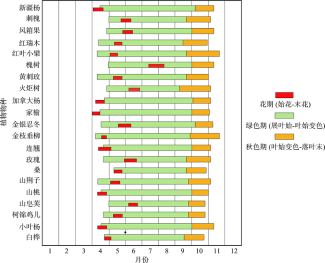 谷爱珍. 植物物候相在植物季相景观设计中的应用——以呼和浩特市40种园林树木为例[D]. 呼和浩特: 内蒙古农业大学 2011.