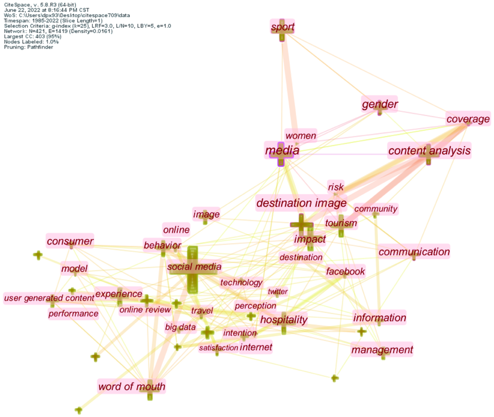 图1 1985年至今旅游类期刊中以媒体数据研究的年度发文量和被引频次趋势图Fig. 1 Trend of annual publication volume and citation frequency of research using media data in tourism journals from 1985 to present |