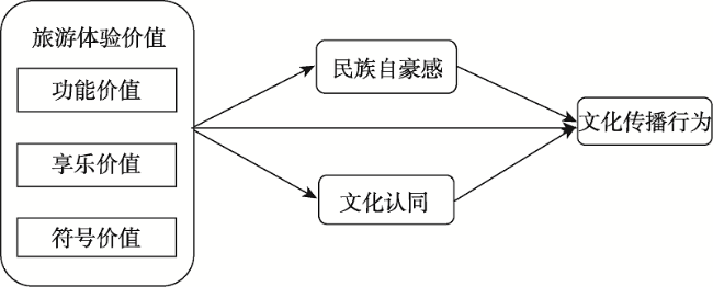 旅游是文化传播的载体,旅游者是文化传播的主体。本文基于情绪评价理论和社会认同理论,构建基于民族自豪感和文化认同的中介效应模型,考察海上丝绸之路(以下简称"海丝")旅游体验价值对旅游者文化传播行为的影响机制。研究结果表明:旅游体验功能价值和符号价值通过民族自豪感和文化认同影响旅游者的文化传播行为。旅游者在海丝文化旅游体验中形成的集体身份认知诱发民族自豪感,进而将海丝文化符号与民族集体记忆建立情感连接,形成文化认同;在民族自豪感和文化认同的驱使下,旅游者将高度的情感能量转化为具体的文化传播行为。旅游者体验到的民族自豪感和文化认同越多,则实施文化传播行为的可能性越大,文化传播行为又强化了旅游者对自身群体身份的认同。因此,应进一步凝练海丝文化元素符号,凸显海丝文化成就,提高旅游体验价值,提升旅游者民族自豪感与文化认同,进而促进文化传播。