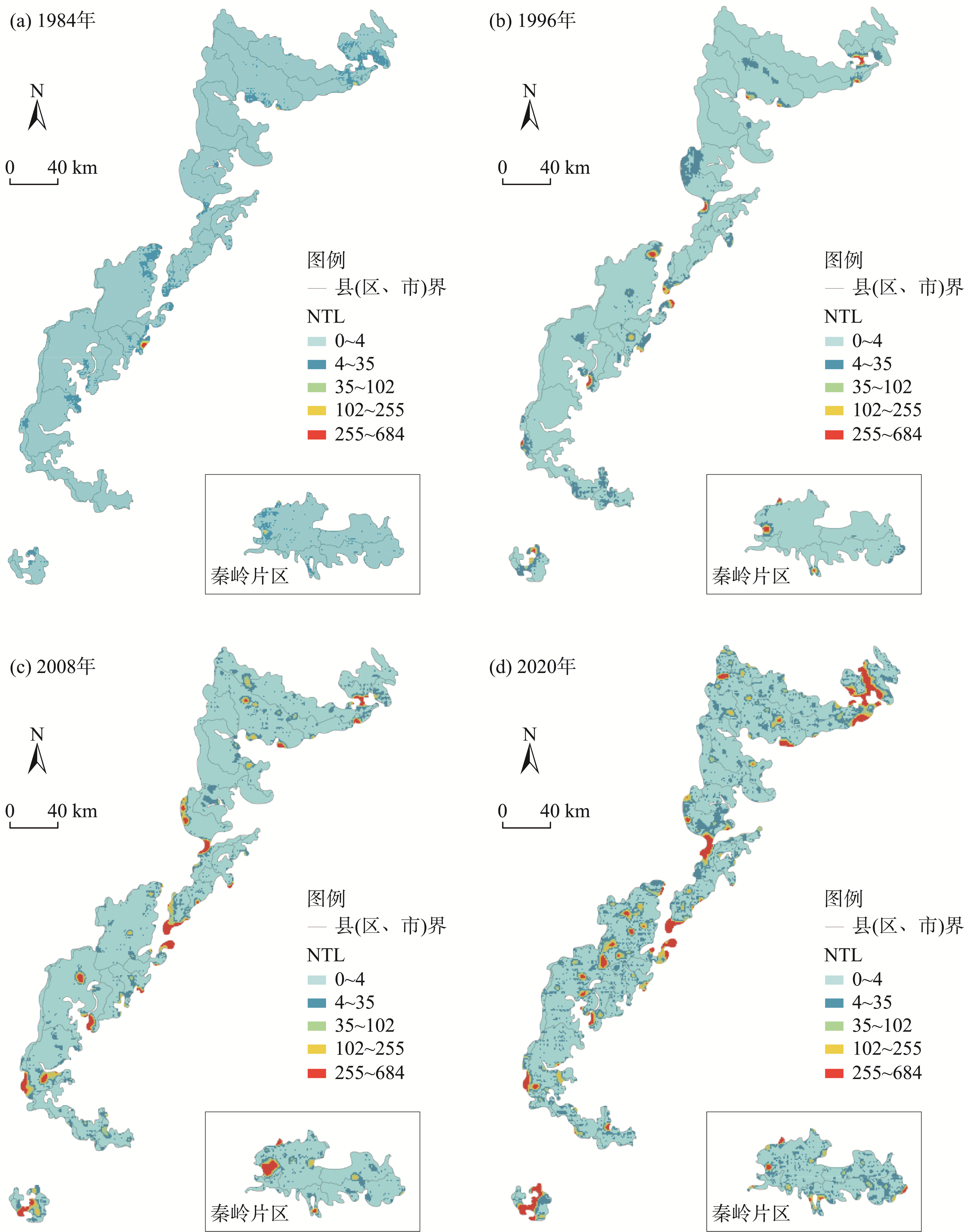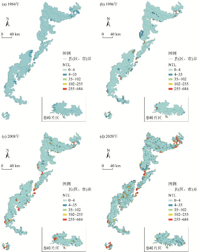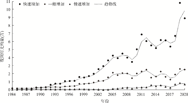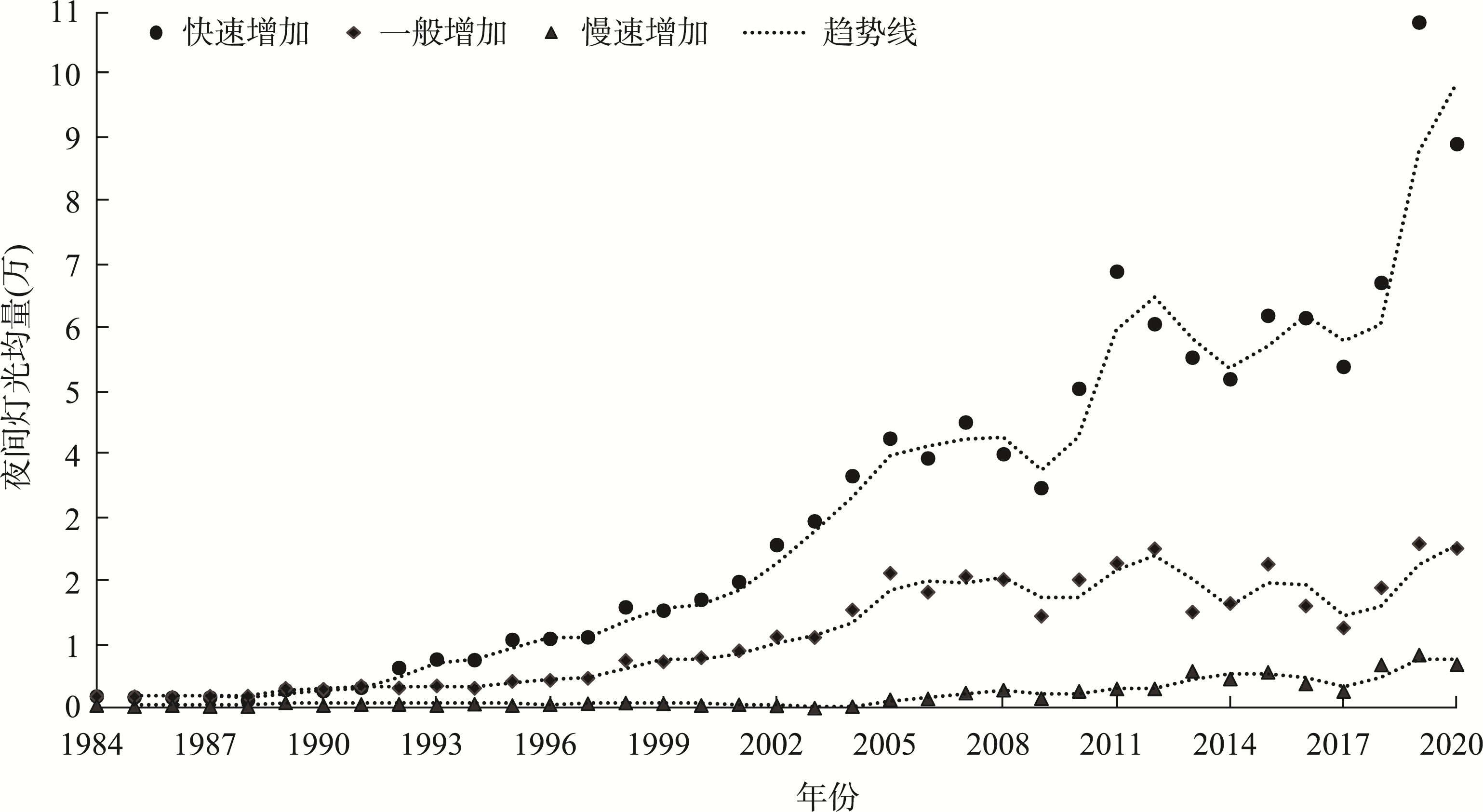 表2 各区域年际夜间灯光数据变化Mann-kendall检验结果Tab. 2 Results of M-K test on the variation of inter-annual data in each region |