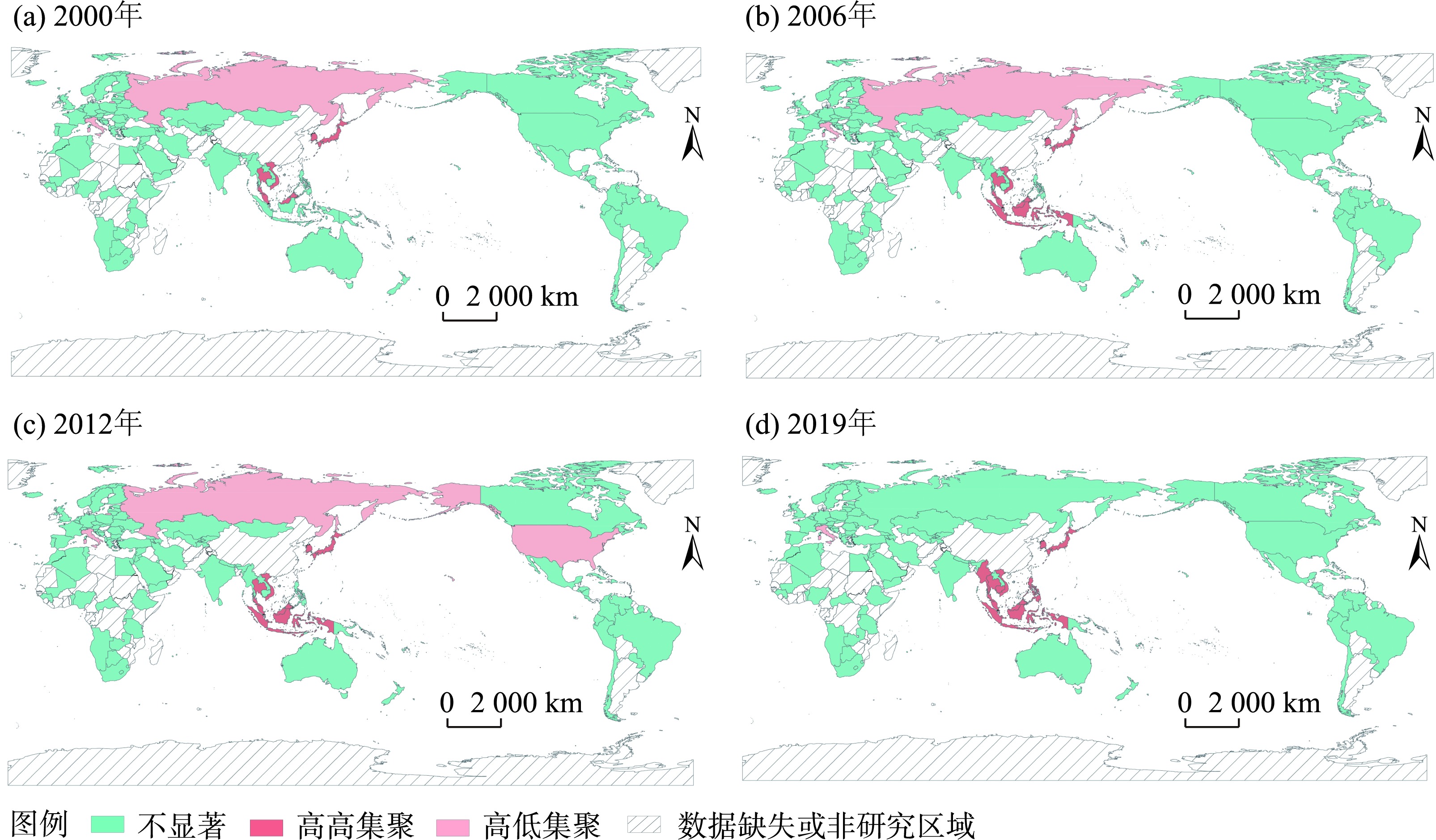 2000—2019年中国出境旅游流LISA集聚图