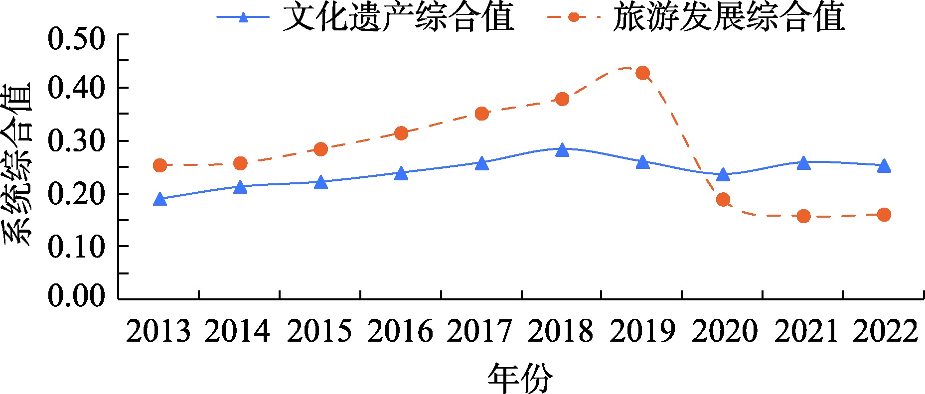 2013—2022年文化遗产保护利用和旅游发展时序变化