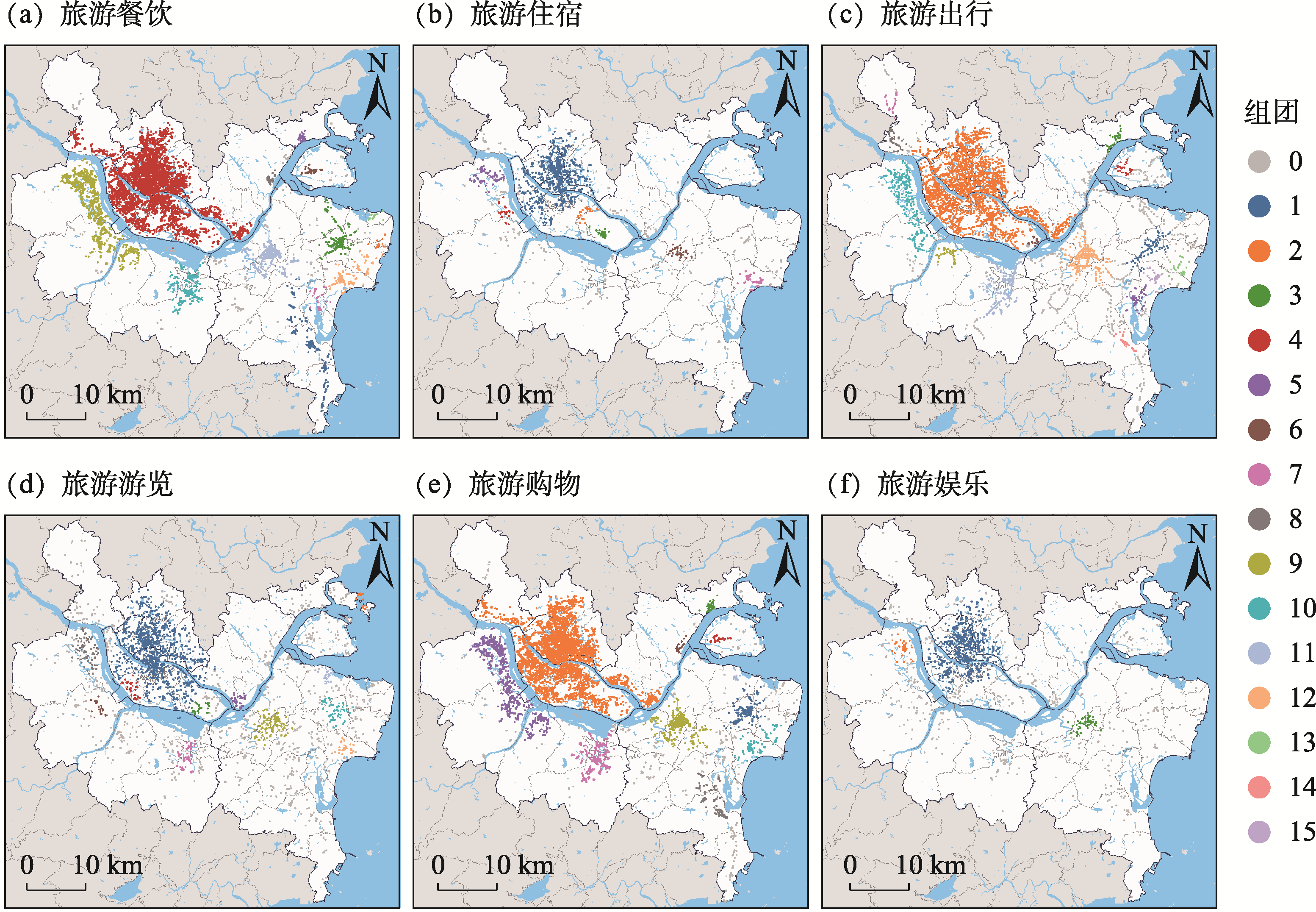 表3 旅游产业要素HDBSCAN聚类组团分布Tab. 3 The distribution of HDBSCAN cluster group of tourism industry factors |