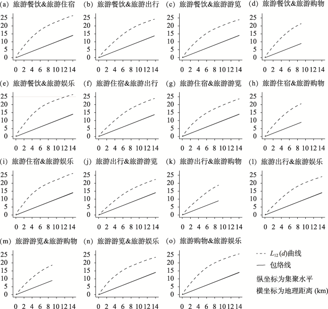 The complexity of urban functions and structure brings new challenges to the spatial layout of tourism industry factors. This study focuses on the main urban area of Fuzhou City and examines the spatial distribution of the six factors of the tourism industry: catering, accommodation, transportation, sightseeing, shopping, and entertainment. Bivariate Ripley’s K function is introduced to reveal the “distance-agglomeration” correlation pattern among these factors. The results show that: (1) the spatial distribution density of the six factors of the tourism industry has a strong correlation with the urban functional zoning, and the pattern of the six factors shows the distribution characteristics of “along the river, large agglomeration and small dispersion”, and forms multiple spatial clusters. (2) The agglomeration hotspots distribution of the six factors of tourism industry has spatial commonality and heterogeneity. The hotspots of catering, shopping, and entertainment factors demonstrate strong spatial correlations, while sightseeing hotspots tend to have a mono-core distribution. Transportation hotspots have a broader distribution range, and accommodation hotspots have a strong tourist flow and transportation orientation. (3) The study identifies four types of “distance-agglomeration” spatial correlation patterns among the six factors of the tourism industry. The patterns include “close distance-strong agglomeration” and “close distance-weak agglomeration”, with the shopping factors at the center. The “long distance-weak agglomeration” pattern is associated with transportation and sightseeing factors, while the “long distance-strong agglomeration” model is centered on entertainment factors. This analysis offers a deepen spatial understanding of the relationships between different factors of the tourism industry.